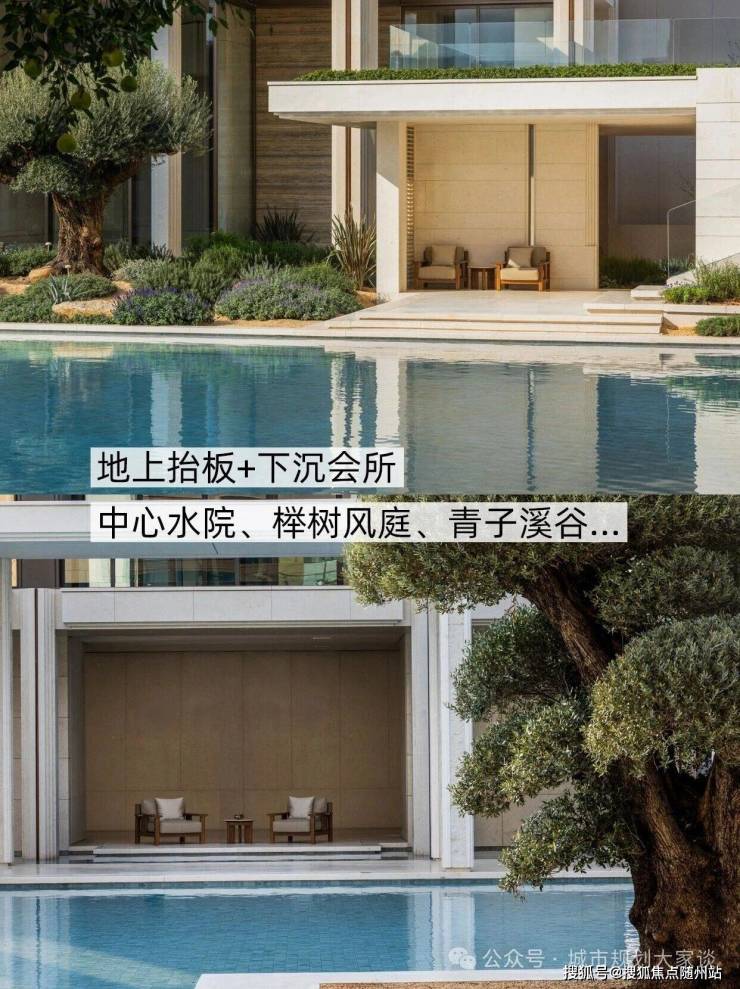 项目也是板块内首个抬板社区,借助约10米高差营造了下沉庭院与抬升景观,空间层次丰富而灵动。