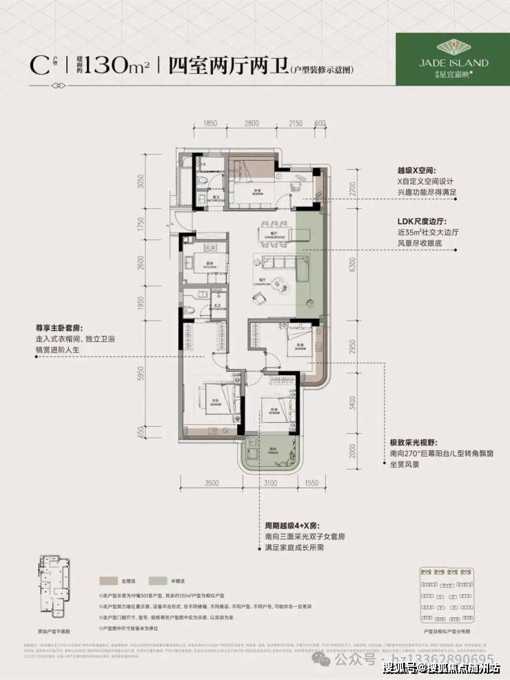 LDK+X可变空间体系,可随家庭成长灵活调整,实现“首改即终改”。