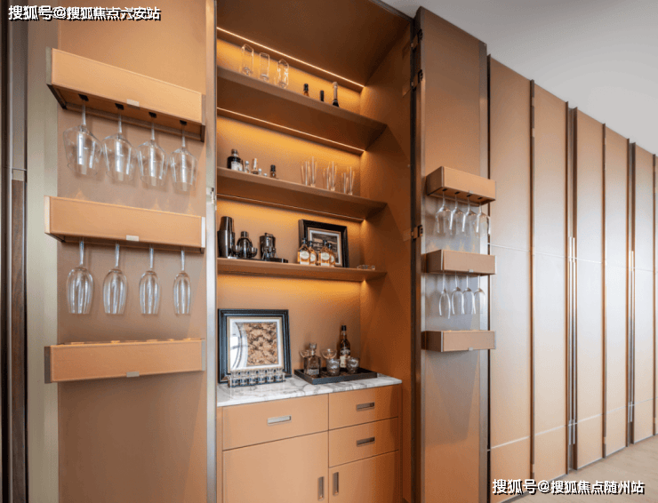 值得一提的是这个高定级的12面衣柜,爱马仕双层皮革柜门打开的轻盈,梳妆台精心打扮鸡尾酒会的造型,摇表器聆听绿水鬼机械转动的声音,隐藏式mini吧喝杯威士忌记得加冰。