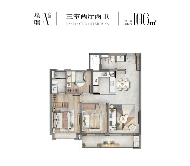 户型面积:建筑面积约106~133㎡