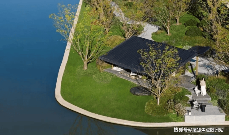 走过约40米和风游廊、黛色青瓦下,踏星而行,复现古时大宅堂前,实现四季有景、步移景异,在自然行径之中,构建「四水归堂」的风雅之景