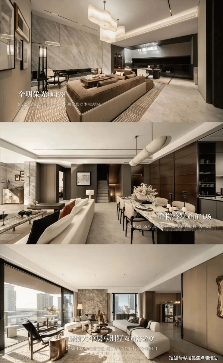 >下叠:重回城央墅境本真(采光地下室+庭院+居住,三层亲地一体)