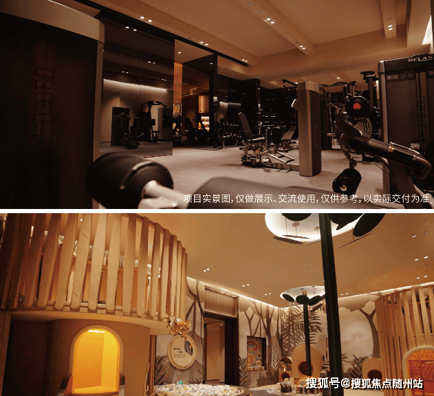 纯正泛会所:入户大堂的地下空间设置约400㎡泛会所配套,专属的健身房和儿童活动空间,涵盖有氧区、无氧区、拉伸区、更衣室和下沉式庭院六个部分。