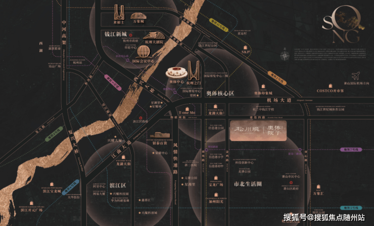 杭州滨江兴耀·松川境府坐落于奥体南·市北西板块,地处建设四路与金鸡路交汇处东侧,占据杭州“拥江发展”战略下的黄金十字轴。