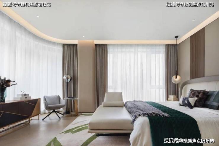 卧室采用套房式的设计概念,主卧设置了男女主人的衣帽间,整个户型的收纳空间可以达到13%以上;自然流畅的功能分界,尽显豪门气度,和当代奢华平层的品质追求。