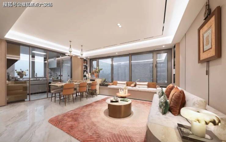 在精装修标准上,项目也是满格配置,比如中央空调,客厅岩板背景墙、墙面高档墙布;厨房四件套(燃气灶、油烟机、洗碗机、蒸烤一体机)、可移动插座、多功能大尺寸水槽;卫生间方面,双智能马桶、暖风机、双面镜柜……