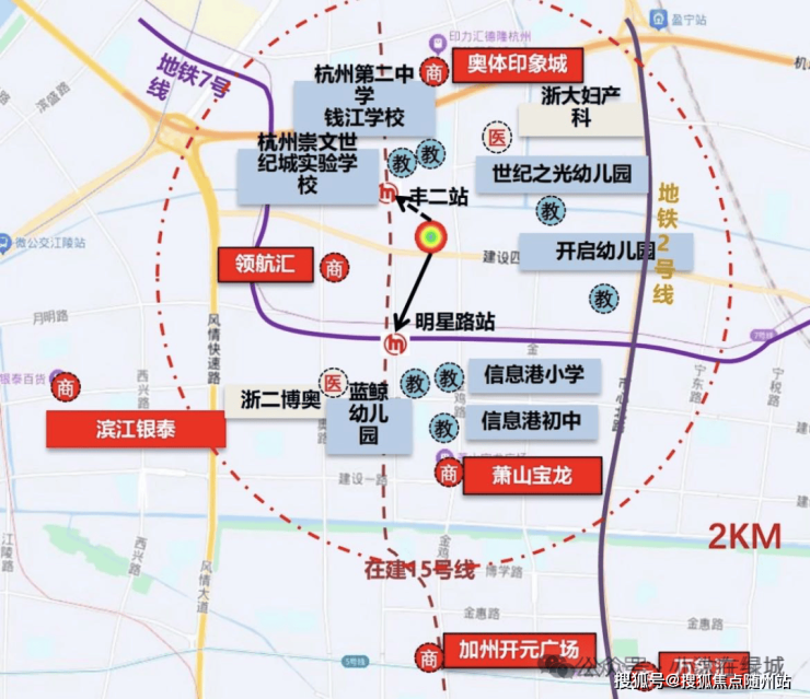 产业赋能:西侧矗立娃哈哈集团总部大厦、英冠乐创中心双子塔,南向微医国际数字健康中心,构筑大健康产业高地。