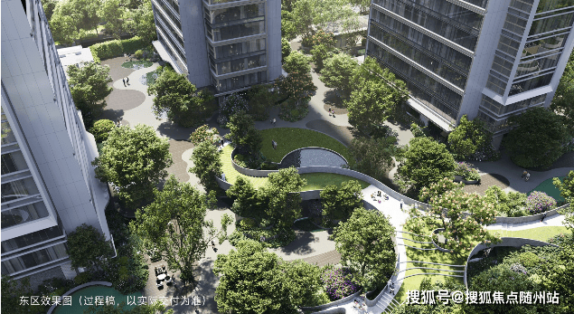 景观设计参考新加坡、曼谷等国际城市经验,以“城市度假地”为线索,分为东区、西区和中区,中区为约7.3万方的商业Mall,引入“公园生活”理念,通过立体绿化、步行坡道等增强公共属性。