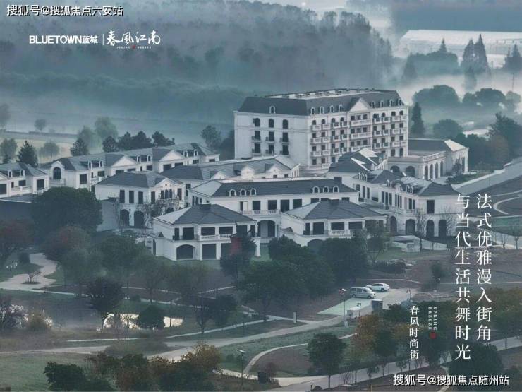 一庭一径,疏影横斜;一窗一阁,烟波凝驻。转身步入小镇中心—春风时尚街,法式建筑错落,借景透景,让晨雾、光影都显现出独有的浪漫色彩。