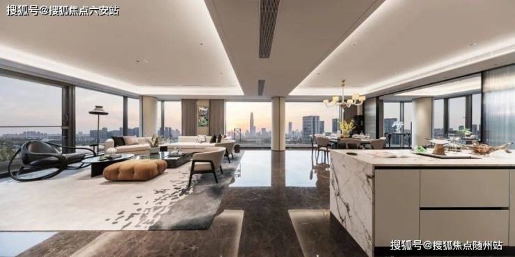 • **流体美学**:外挑铝板如湖面涟漪,8.9米挑高架空层化身艺术展厅,入口处百米玉质长卷与弦月水景,重构归家仪式感。