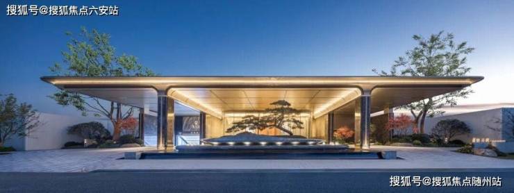 首入示范区,是约40米宽的地标级华盖门庭,犹如一座恢弘的艺术馆入口,以超长尺度,启幕归家的序曲。此外,大门在造型、选材和工艺上同样可圈可点。大门景墙汲取“行舟潮起”的灵感,打造媲美星级酒店的落客区。由铂金钻奢石密拼铺装的景墙,与中岛区价值不菲的全冠植栽的黑松迎接着访客,给人第一眼的惊艳。
