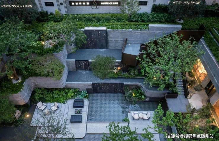 再譬如说那个立体交叉的庭院,有着博尔赫斯“交叉小径”的复杂。“浮香水境”的倾泻;“层林叠院”的台地,以及“共游洄廊”的移步换景,把一座全地貌的大自然搬回家。再结合地下会所和三大泛会客厅,“一窗一世界”背后,就是“庭屋一如”。