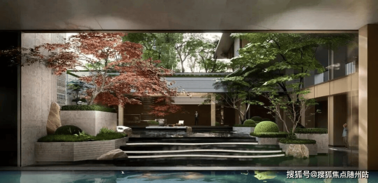 悬浮于城市上空的生活美学岛屿,悬浮绿洲、门厅飞瀑开场,入境“一轴七岛十一境”的超级立体庭园。七大主题岛屿,连岛成洲,构建浮岛庭园洄游动线。园中下沉庭院、戏水池、镜面水院等等让园景层次丰富、无限变幻,呈现岛的风景“发现”之旅。