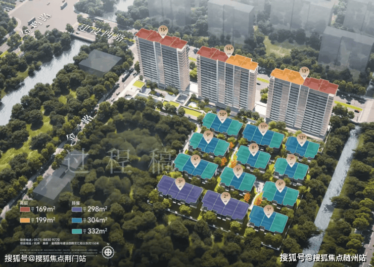 项目采用“南低北高”的复合布局,北侧3幢17层小高层以169-199㎡奢阔尺度,构建城市天际线的观景台。全景落地窗设计将钱塘江景与城市灯火尽收眼底,每一扇窗都是动态的风景画。南侧12幢298-332㎡稀缺排屋,通过下沉庭院与景观水系的立体设计,实现“院中有园,园中有院”的隐逸境界。