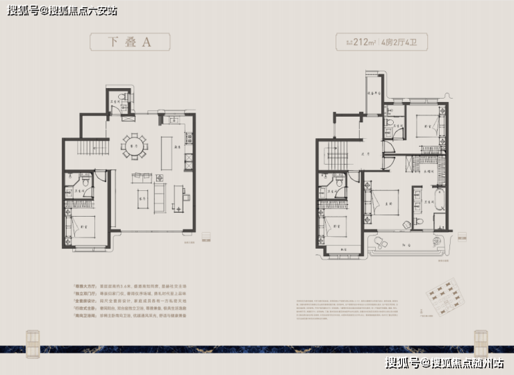 建面约210-280㎡纯4层叠墅,通过上叠北庭下叠南院,独立归家动线、约6m层高地下空间与全套房设计等,推动叠墅空间进化。精装上,嘉格纳、博世等百年品牌加持,尽显极简优雅。