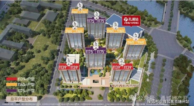 核心配套:2号线/10号线(在建)孔浦站上盖,无缝衔接地铁口;物业费3.25元/㎡,均价2.5W/㎡。
