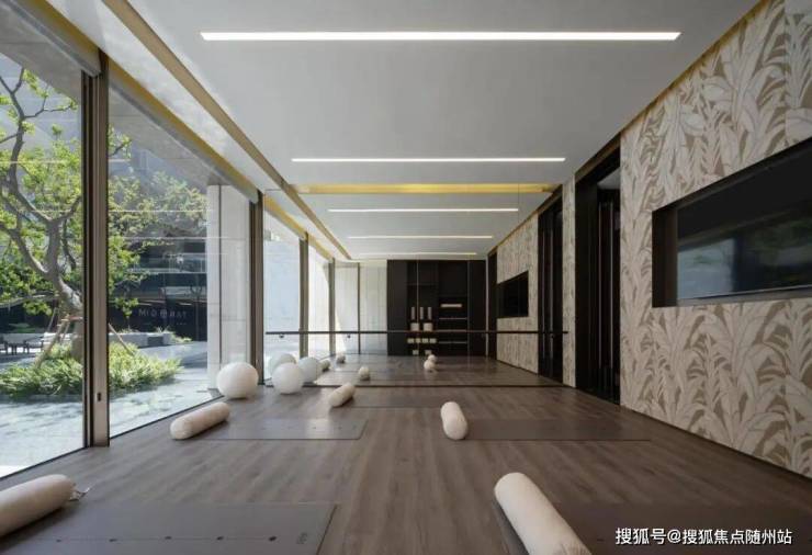 运动私享区规划专业健身、瑜伽两大功能,配备顶级健身设备,大面积全景落地玻璃窗,开阔视野,下沉庭院的美景一览无遗。
