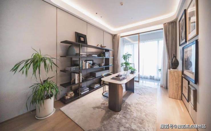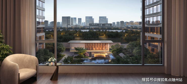 通常300㎡商业大户型南向面宽约14米,这套样板房却足有约16.35米。从而成就了约6.1米×10.8米的L型转角厅,面积约65㎡。任阳光和清风倾泻而入,窗前的一脉河景和翳绿浓荫,一无窒碍。
