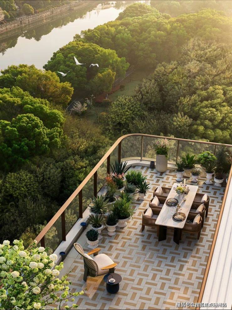 站在这里能无遮挡俯瞰整条运河,不远处的环球中心地标清晰可见,城市繁华和运河的静谧完美融合。这份独一份的观景视野,在板块内独一无二。