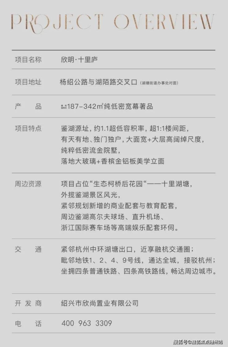 总结:欣明·十里庐以“鉴湖畔纯低密排屋”为核心,集1.1超低容积率、大面玻璃铝板立面、超1:1楼间距、融杭半小时交通网、高端娱乐配套于一体,既是塔尖人群的“隐世桃源”,也是兼顾便利与品质的“城市山居”。目前项目建面约187-342㎡纯低密宽幕著品热销中,入主鉴湖畔的最后机遇,莫失良机!