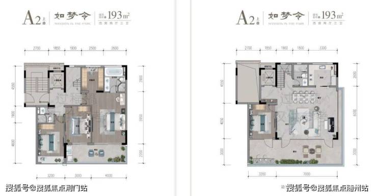 拿上叠来说,餐客厅面宽约7米,进深约6米,足足约42㎡的大方厅,已经是堪比商业大平层的尺度,外面还衔接着进深约3米,面积约30㎡的超大露台。