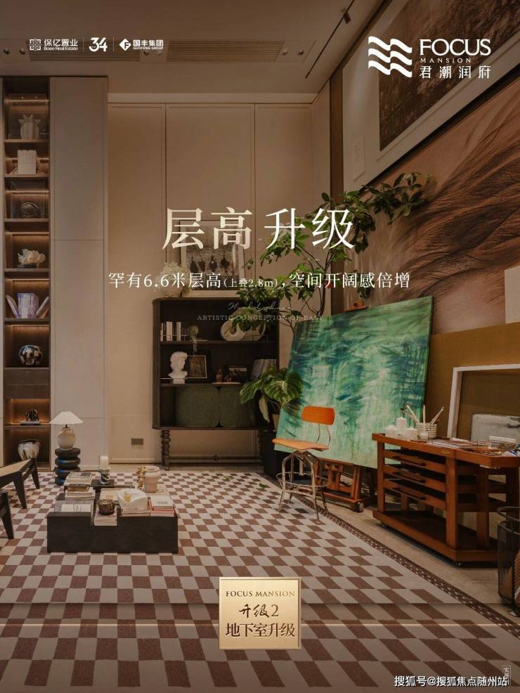 在空间维度突破上,君潮润府创新打造“立体生长空间”,下叠产品约6.6米层高地下室,通过约3.5米夹层+约3.1米地下层的组合,相当于赠送业主一座垂直艺术馆,夹层可改造成星空酒窖,地下层则能容纳专业级家庭影院。即便是上叠也拥有约2.8米层高的地下室,配合采光井,形成一番悠然自得的小天地。