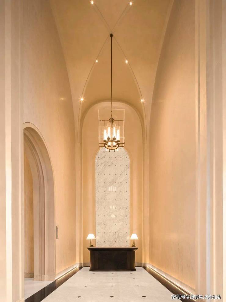 走进沐兰台的挑空大堂,抬头看,你一定会被那挑高约9米的穹顶所震撼,让人有一种步入宫殿般的庄重感。