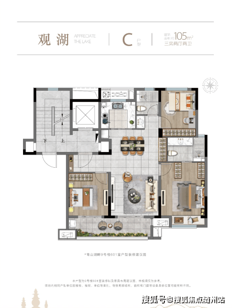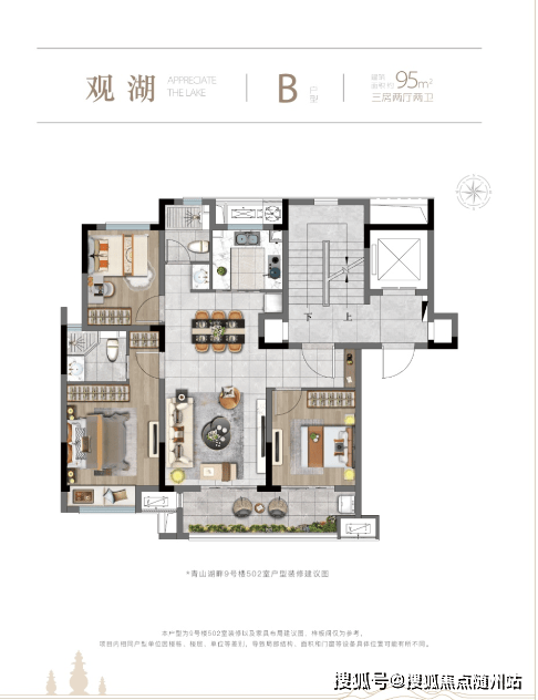89㎡三房:南向三开间朝南,6.8米双联阳台,主卧套房+独立玄关