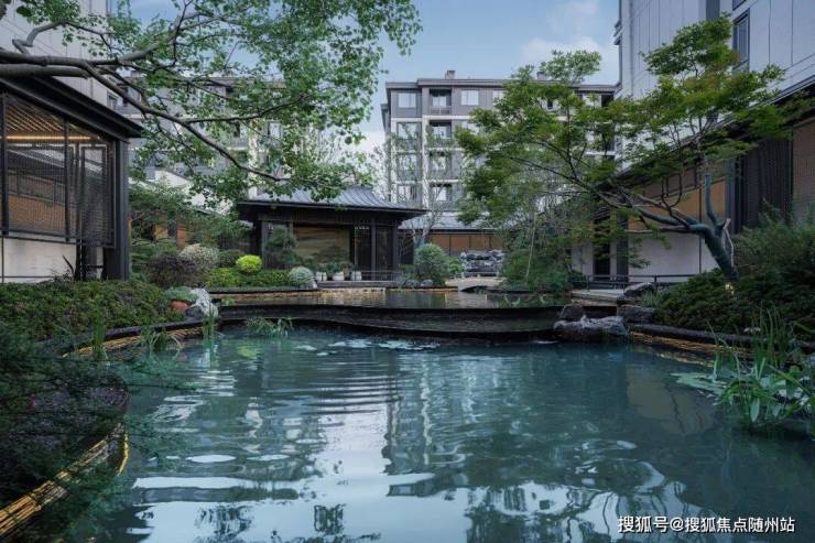 小区北入口更显质感:开阔门庭搭配迎门罗汉松,门禁系统与人车分流设计,归家路径安全有序;中庭“四水归堂”庭院以远山叠瀑、亭台奇石造景,宋代园林的仪式感与松弛感并存,未进家门已先享诗意。