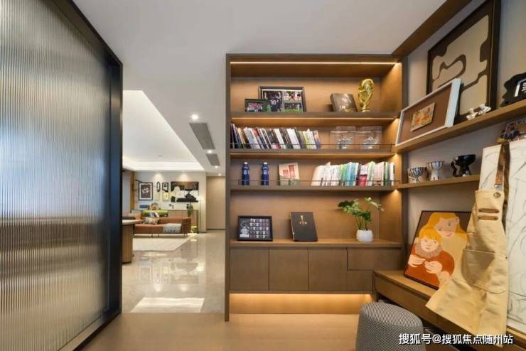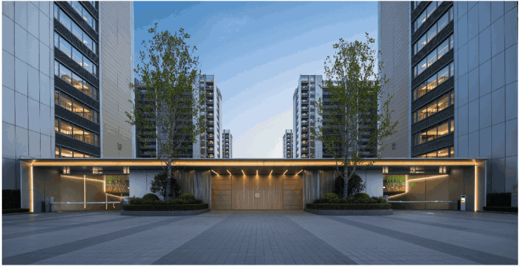 一路走到单元入户大堂,挑高设计搭配质感墙面与柔和灯光,没有冰冷的疏离感,反而像走进了星级酒店的大堂,让每一次归家都成为一场充满尊崇感的旅行。