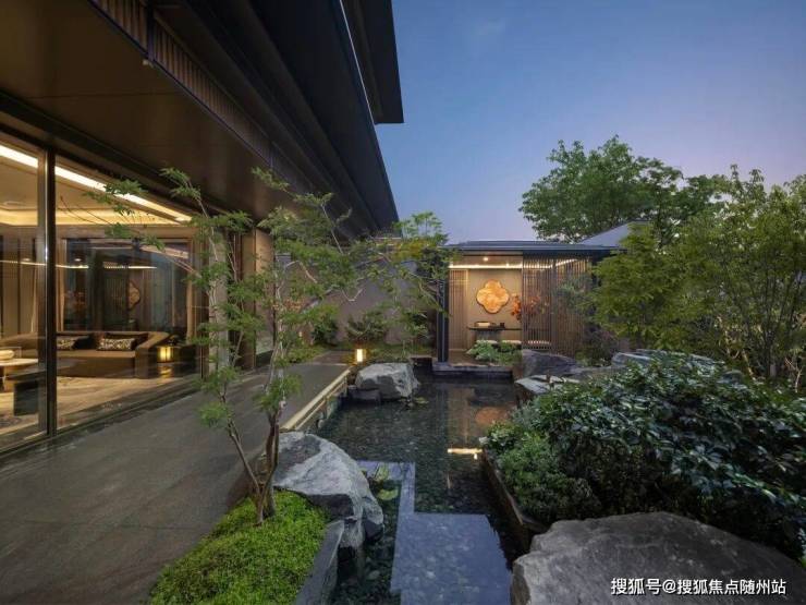 漫步于光影交织的幽静庭院,您将踏入一方充满诗意的天地。潺潺流水映照着婆娑树影,挺拔树姿为这片空间注入向上的生机,纵向延伸出无限的视觉张力。这座下沉庭院,不仅拉近了建筑与自然的情感共鸣,更使室内与景观紧密相连、和谐相融。每一扇窗户,都犹如框中的一幅生动山水画。