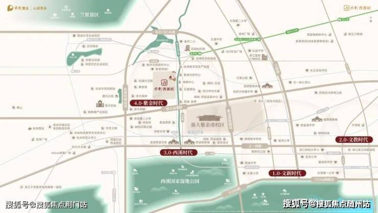 西源赋直距4号线莲池路站(在建)仅约660米,直距浙大紫金港校区仅约1.3公里,叠墅组团紧挨着西溪湿地余脉塘河,属于城西下一个全方位的价值高地。