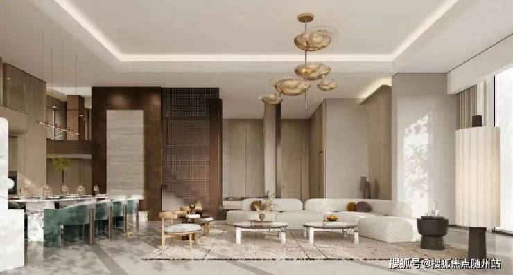 洄游入户动线,艺术楼梯,约全落地巨幕玻璃窗,尽揽首层花园、园林谧境。270°全面屏环幕采光,4.8米挑高近80㎡会客领域,每个角落都沐浴在自然光中,尽情享受无界社交的写意松弛。