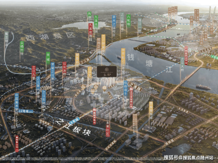 项目牢牢扼守之江新城发展主动脉,坐享省级文化中心、双银泰繁华商圈、优质教育集群及顶尖三甲医疗配套,更将西湖的灵秀与钱塘的浩荡收纳为窗前日常,其地段的稀缺性与综合性在杭州难觅其二。