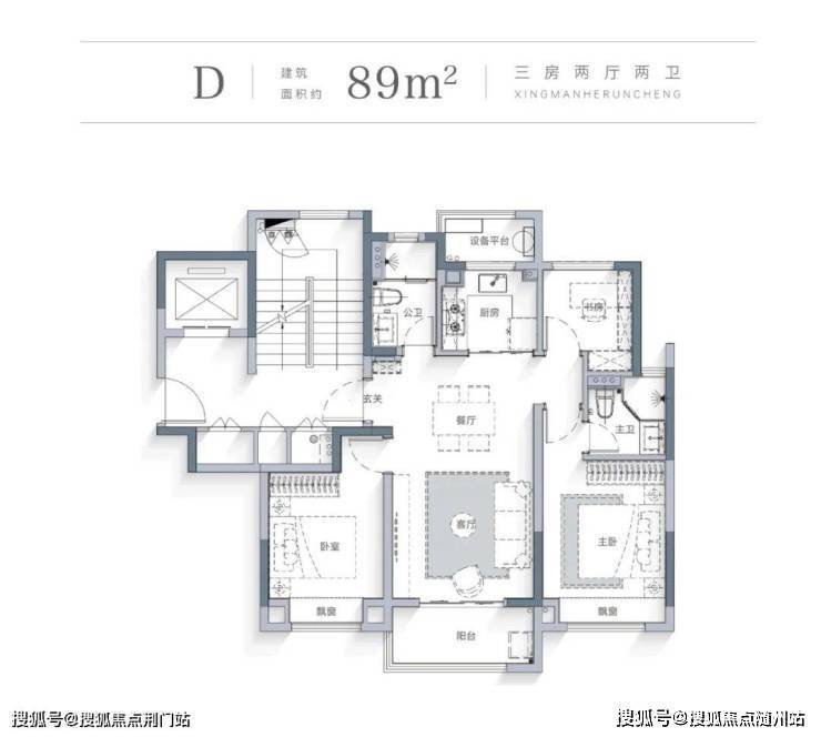 约89㎡的户型,是三开间朝南的经典户型,餐客厅带阳台,主卧则是做了套房设计。售楼热线:☎ 400 832 8823「售楼处」☎〢🔻已认证〢◆🔻