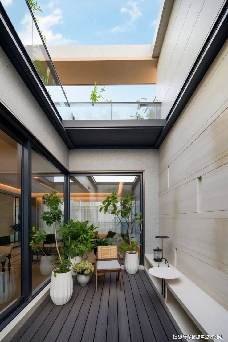 上叠户型利用玻璃隔出引光入室的露台,再配上电动天幕,无论晴雨,皆是从容自在。