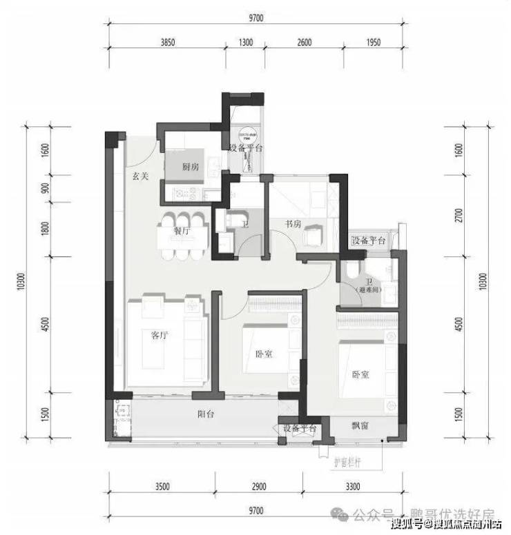 户型方正·约9.7米三开间朝南·双联巨幕阳台U型厨房:容纳双人同时操作、灵动转身,谈笑间珍馐美味怦然呈现一体竖厅:餐/客厅链接瞰景阳台,纵享视觉盛宴,邂逅森系浪漫主卧套房:配置独立卫浴间,情景飘窗揽景入怀,私享二人世界静谧书房:多变空间,可改造为儿童房/直播间/电竞室等多元化空间