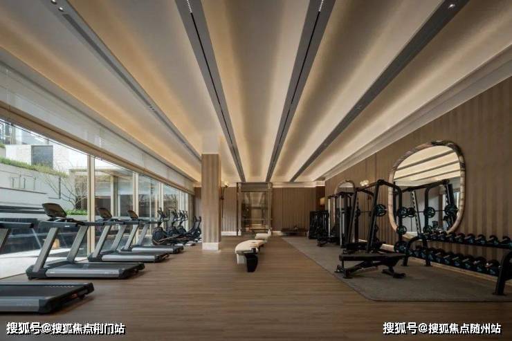 开阔场域内,跑步机阵列与绿植幕墙形成视觉韵律,以典雅东方美学为基底,融合现代奢华设计语言,几何线条勾勒刚柔并济的视觉层次,暗合保龄球运动中力与美的平衡哲学。