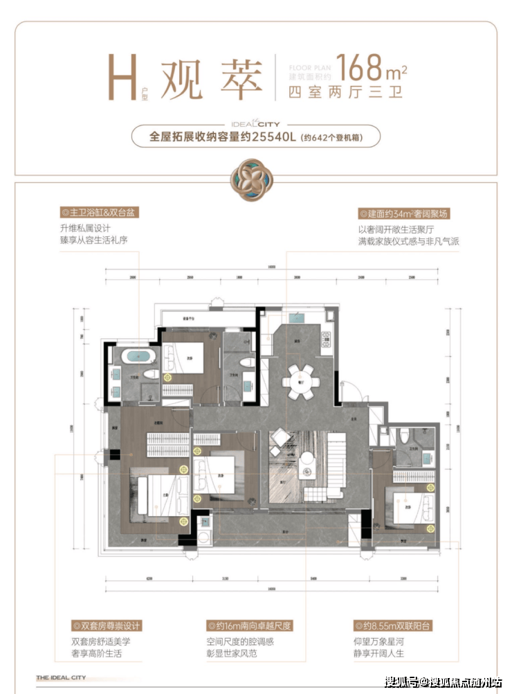 #建面约𝟏𝟐𝟓-𝟏𝟔𝟖㎡四房 臻席销售