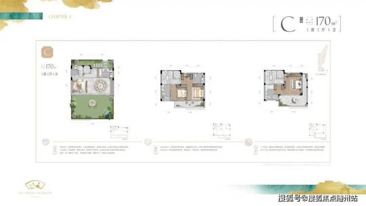 本项目创新性实践"天人合一"的现代居住哲学,通过月门、花窗、雕栏等传统建筑语汇的现代化转译,构建"四维渗透"空间体系——户内空间与私家庭院互为延伸,院景与远山形成视觉对话。产品线涵盖149-227㎡产权式庭院住宅,配置全生命周期配套设施:规划有环社区健康跑道、生态垂钓区及可租赁式农园,实现城市生活与自然体验的无缝衔接。