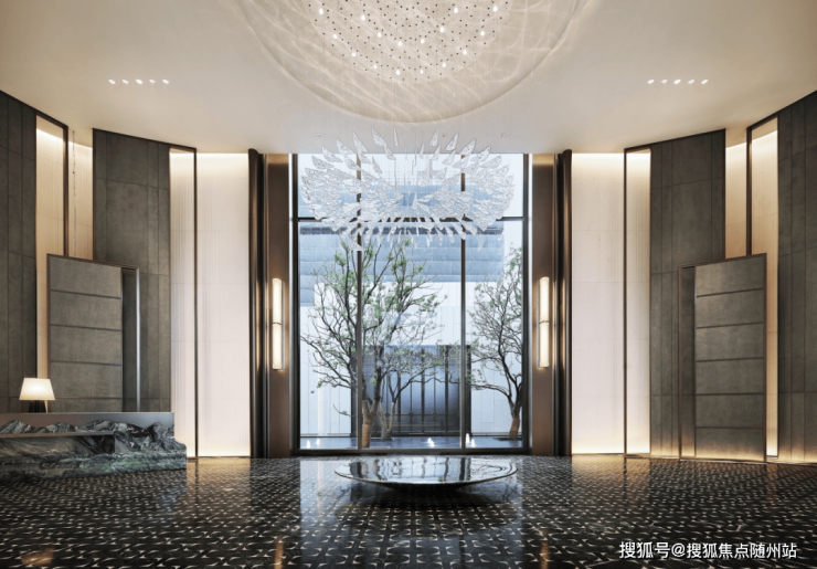 定制的酒店式社区归家大堂“绮丽门厅”,是第四道归家仪式,可以兼顾迎宾、接待、等候的重要功能。