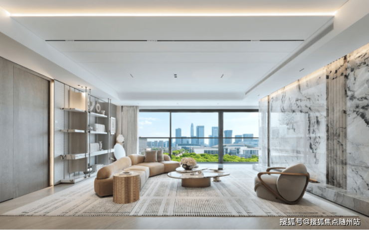 室内为都市简约风,采用奢石、高端木饰面和金属等材料,营造高奢品质感。运用高品质木饰面和奢石打造高颜值空间。
