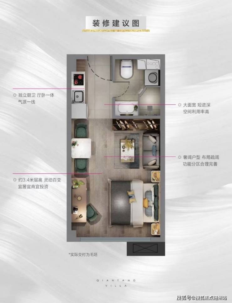 钱塘新区核心,7号线地铁口,建面约42㎡公寓,均价13300元/㎡起。总价54万起