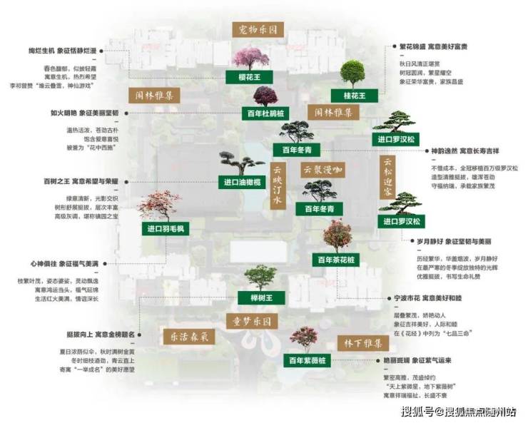 这座沉浸式园林中,选种了近百种四季植物,建发更是斥巨资引入了“9大名木”:风骨遒劲的进口罗汉松、树高达9米的百年冬青、西班牙引种的油橄榄、风姿绰约的乌桕、叶如细羽的进口羽毛枫、还有“独木成林”之姿的榉树、樱花、桂花……俨然就像是一座高级感的“植物珍赏园”。