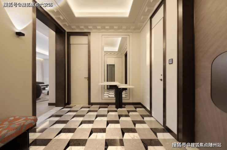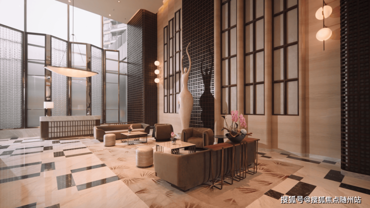 而摩纳哥的奢华,则在「壹云32品」大平层中得到了另一种形式的演绎。从入户大堂的那一刻起,就能感受到那份与众不同的尊贵。约9.9米挑高的空间,搭配着灵感女神的艺术雕塑,让人瞬间被一种高雅而神秘的气息所包围。大堂内各种珍稀石材与精致木格元素的巧妙结合,营造出一种既古典又现代的艺术氛围。