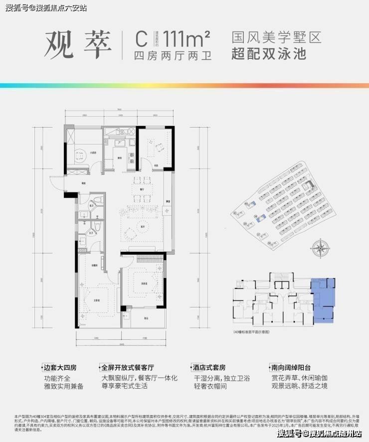 山水颐萃别院主打建面约94-111平方米的精致户型,面向都市新菁英群体的实际需求。产品设计秉承"小而精"的理念,在有限面积内实现空间利用最大化,户型格局经过精心推敲,做到南北通透、动静分离、干湿分区,保证居住舒适度。