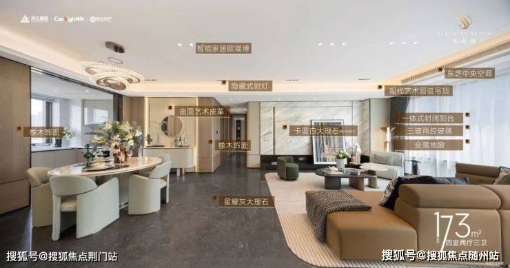 内部装标配置更让你眼前一亮:餐客厅地面和电视背景墙为大理石交付,更有甚者,室内总共用到5款石材,墙面用尼斯木饰面取代以往的墙纸;厨房空调+博世六件套(含双台冰箱),东芝的中央空调,唯宝台盆、汉斯格雅五金、松下智能马桶、智能家居欧瑞博.....很多配置在云城,尚属首次!