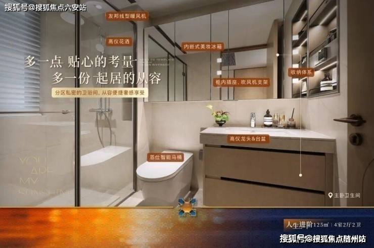 卫生间搭配高仪三件套(龙头、台盆、花洒)、恩仕智能马桶、友邦线型暖风机,细节处尽显人性关怀,品质感油然而生。