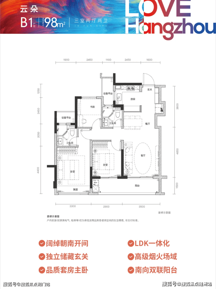总价107万起送车位,南向双卧室+U型厨房,小户型承载三代同堂的温馨;
