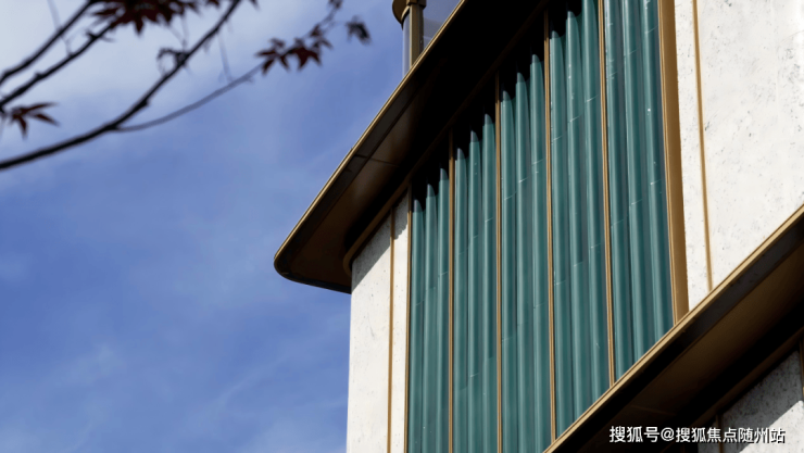 在建筑上,如玺华院以天青色陶板,致敬杭州的宋韵文化,演绎“雨过天青云破处”的意境;观锦宸樾府用伊朗红洞石,唤起当地人对临安鸡血石文化的情感共鸣,呼应“鸡血一滴避邪气,得此宝贝最吉祥”的民间佳话;运河樾用蓝色景泰蓝搭配弧形陶板,再现运河的波光,诠释“春来江水绿如蓝”的江南意境。